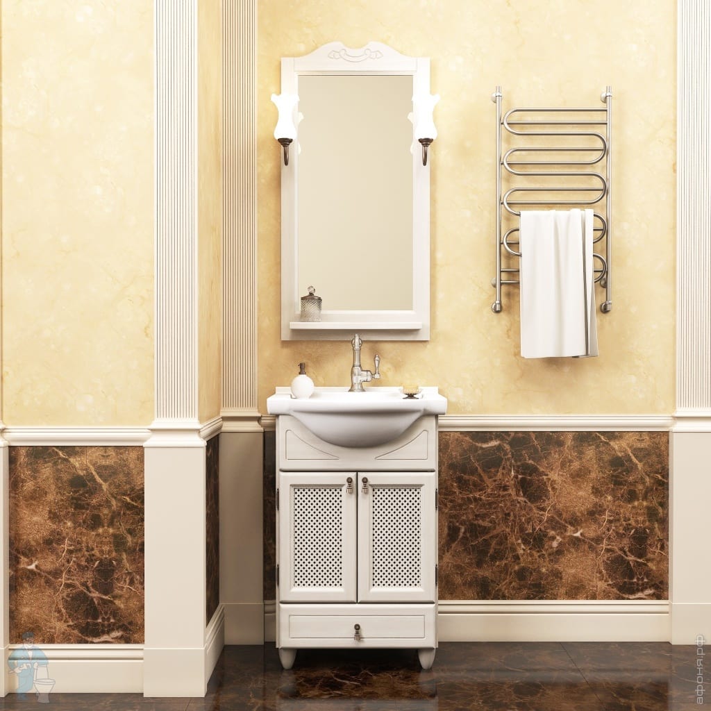 Комплект мебели Opadiris Тибет 50 слоновая кость, раковина Капри с тумбой (560х880х450) зеркало со светильниками