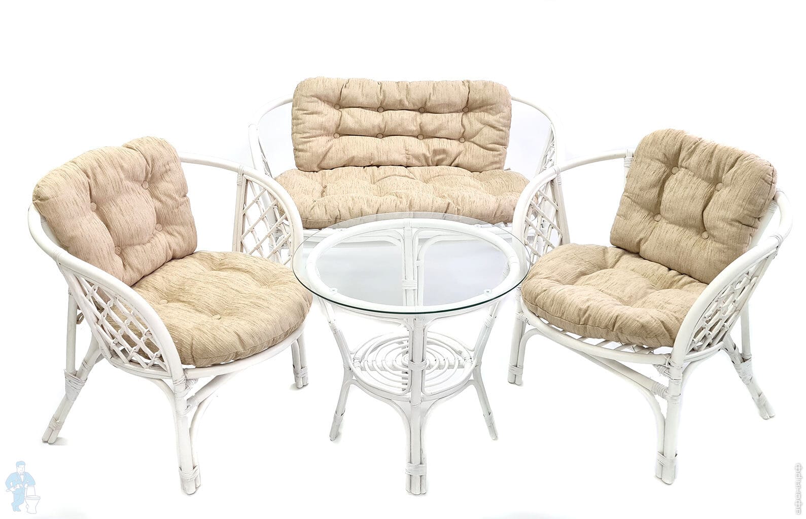 Комплект мебели Багама (120х65х75) диван+2кресла+стол, подушки светлые обычные шенил, белый матовый