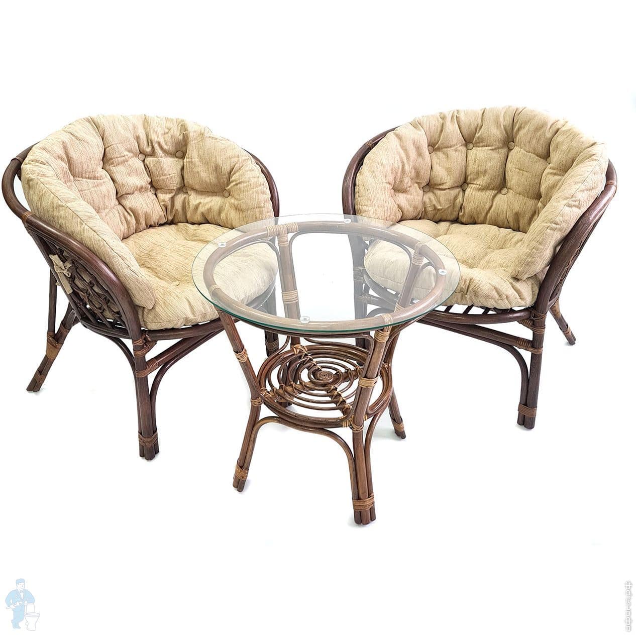 Комплект мебели Багама (75х55х60) дуэт, подушки светлые, полные шенил, 2кресла+стол, орех матовый