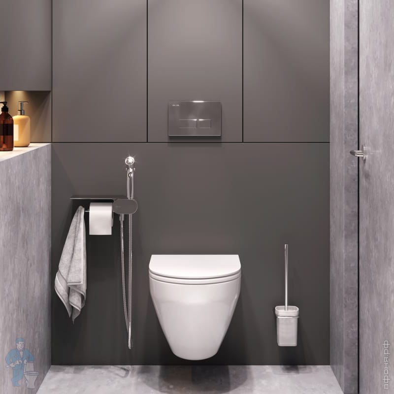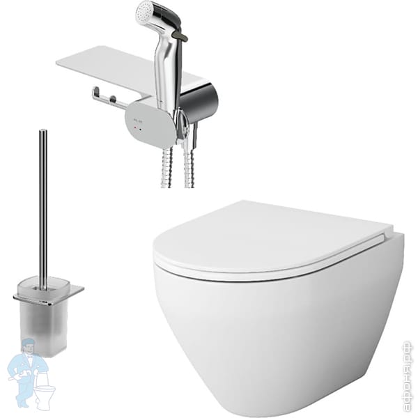 Комплект подвесной AM.PM Spirit V2.0 Унитаз с сиденьем, гигиенический душ с полкой, стойка с щеткой