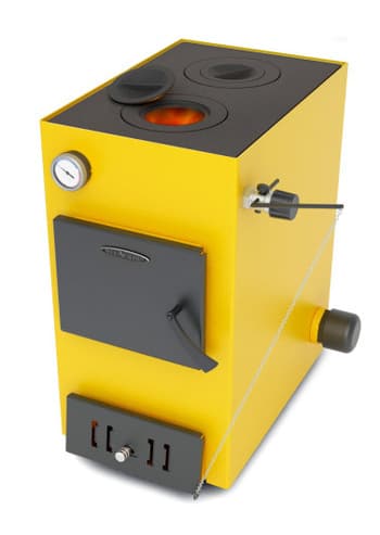 Оригинальная крышка зольника позволяет производить плавную регулировку интенсивности горения. чтобы дверца топливника не перегревалась, она оснащена двумя отражателями. Цвет водогрейных котлов - жёлтый .