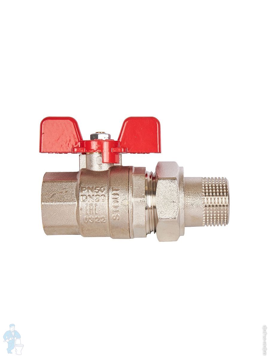 Кран шаровый STOUT ГОСТ 3/4"ВН, с американкой, бабочка, полнопроходной, SVB-1007-200020