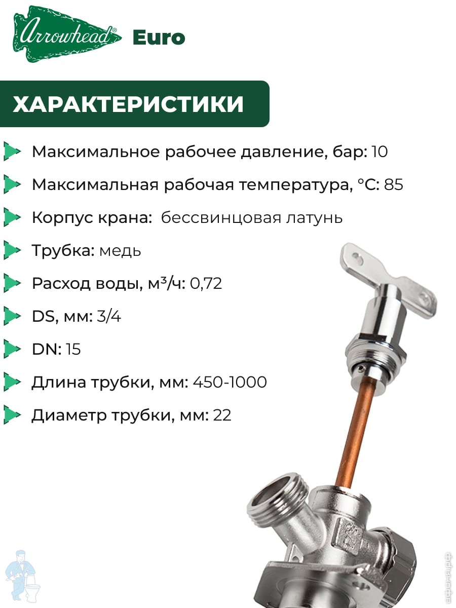 Кран водоразборный Arrowhead Euro, незамерзающий, с антисифоном, 450-1000 мм, 151121