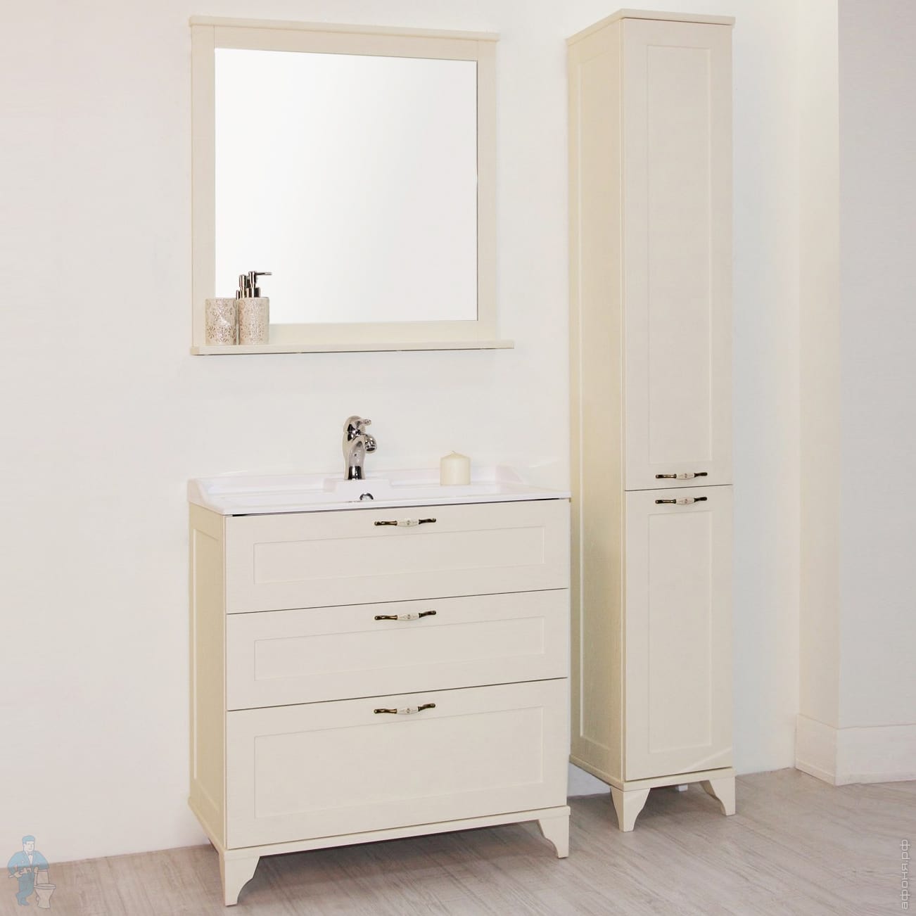 Идеальный комплект с тумбой составит раковина Фабиа 800 код 24205 (докупается отдельно)