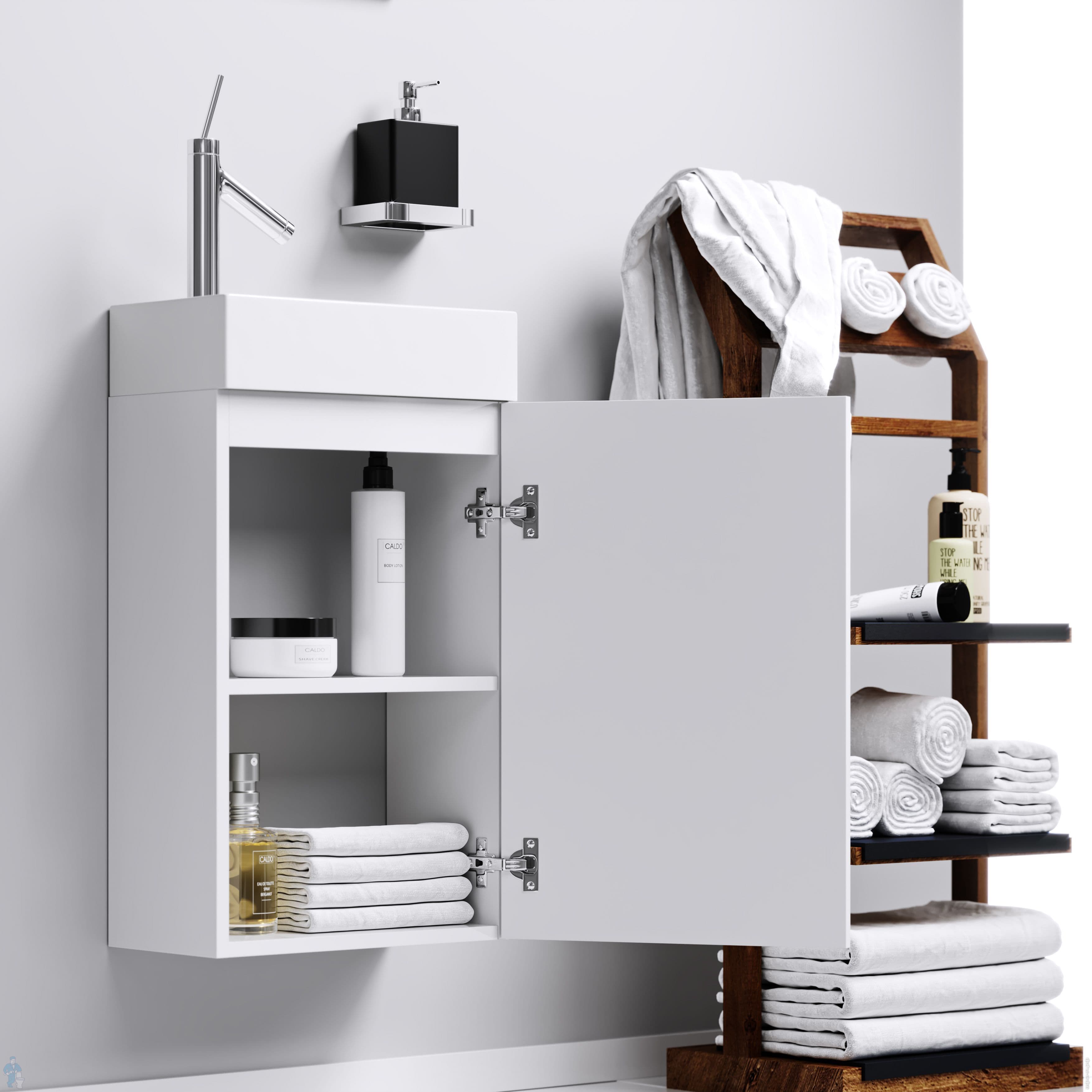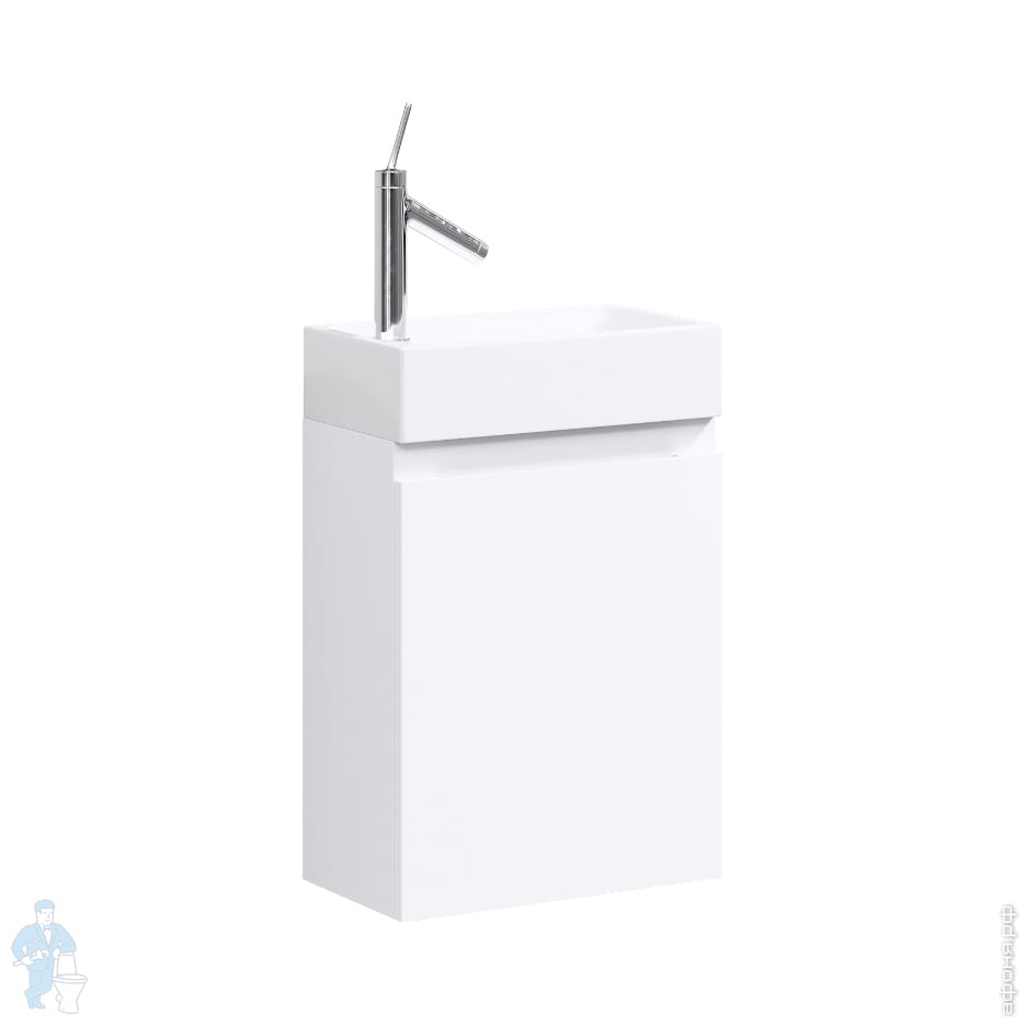 Тумба комплектуется универсальным левым-правым умывальником из литьевого мрамора Unam. Фасады и корпус тумб изготовлены из ЛДСП (древесностружечной плиты повышенной плотности) европейского производства. Кромка на все элементы наносится с помощью лазера, что в разы повышает влагостойкость мебели. Модель выпускается в размере 40 см в подвесном варианте и оснащена распашной дверцей на мебельных петлях с доводчиками, которая открывается в правую сторону.