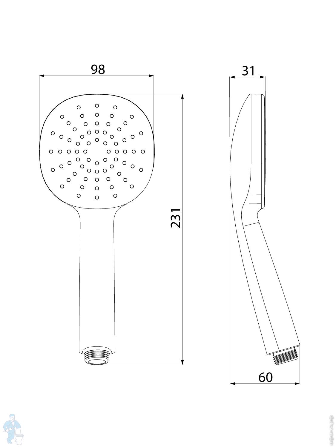 Эргономичная ручная лейка Optima Home имеет 1 режим работы (Rain) и оптимальный диаметр (98 мм) - принимать душ очень комфортно благодаря равномерному распределению потока воды тонкими дождевыми струями по всему ее периметру. Форсунки из термопластичной резины утоплены в корпус лейки, что придает ей актуальный и лаконичный внешний вид.