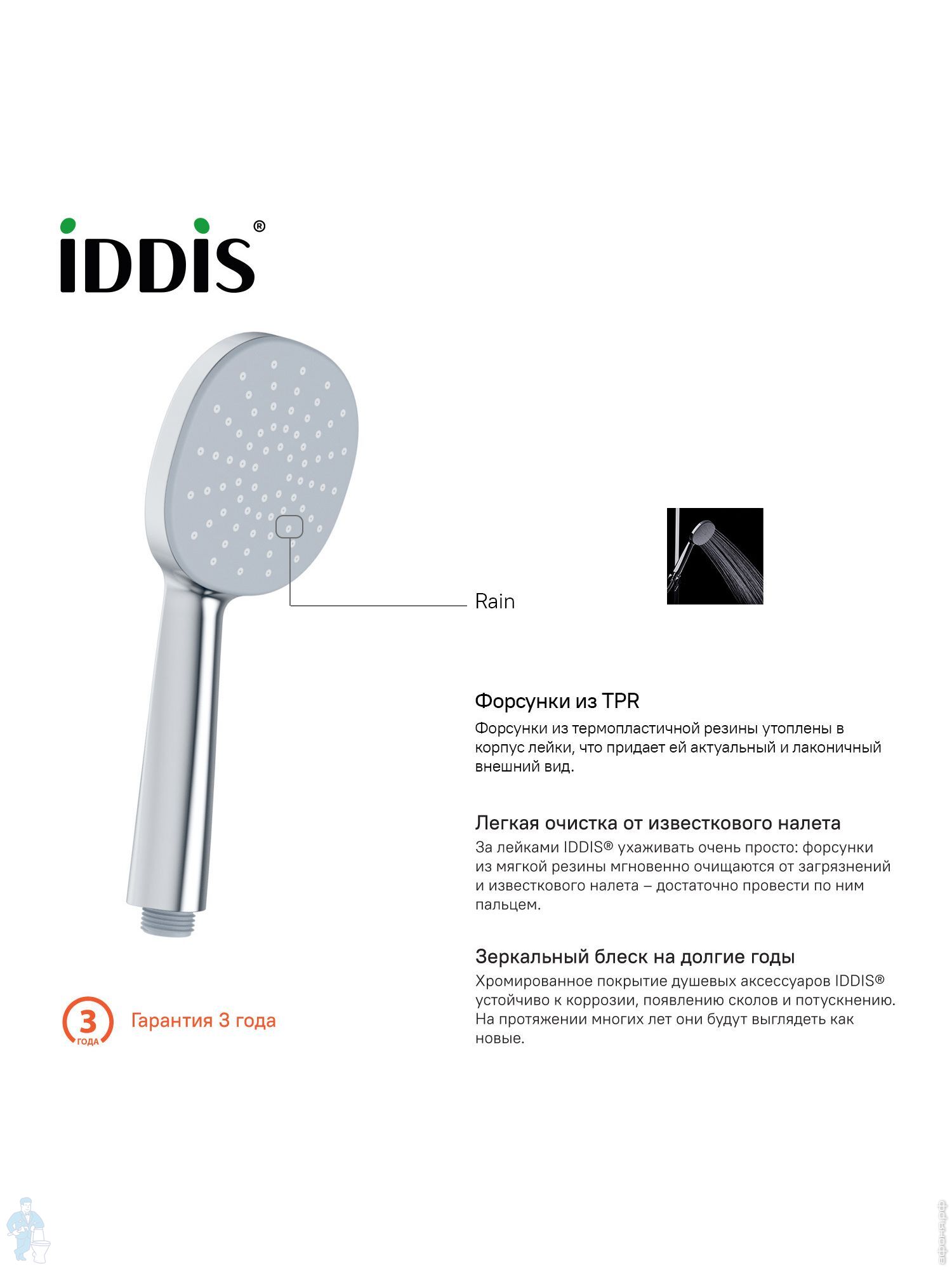 Гарантия на душевые аксессуары IDDIS - 3 года.