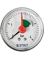 Манометр Stout, 0-4 бар, 1/4", D50мм, задн.подкл. (аксиал.) с указателем предела SIM-1007-500408