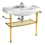 Металлическая структура Kerasan Retro 730091 с полкой-решеткой,полотенцедержат. и мыльницей,золото