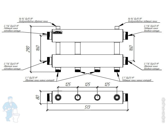 Модульный коллектор Gidruss MKSS-150-2x25 до 150 кВт, 2 магистр. подкл. 1 1/2, 2 контура 1"
