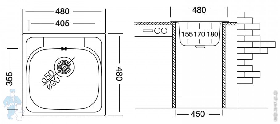 | Глубина, мм: | 480 | Толщина, мм: | 0.8 |