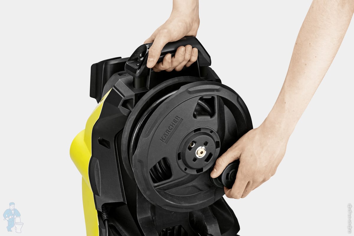 - Шланг высокого давления оптимально расположен и защищён от повреждений, также экономит место для хранения