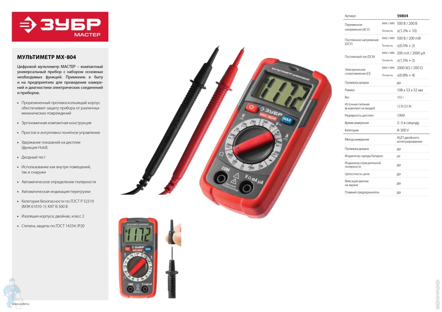 Мультиметр ЗУБР "МАСТЕР" МХ-804 цифровой 59804