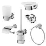 Набор аксессуаров для зоны красоты и туалета AM.PM Like: стеклянная мыльница, стеклянный стакан, крючок для полотенец, кольцо для полотенец, держатель для туалетной бумаги с крышкой, стойка с туалетной щеткой AK80D1506W