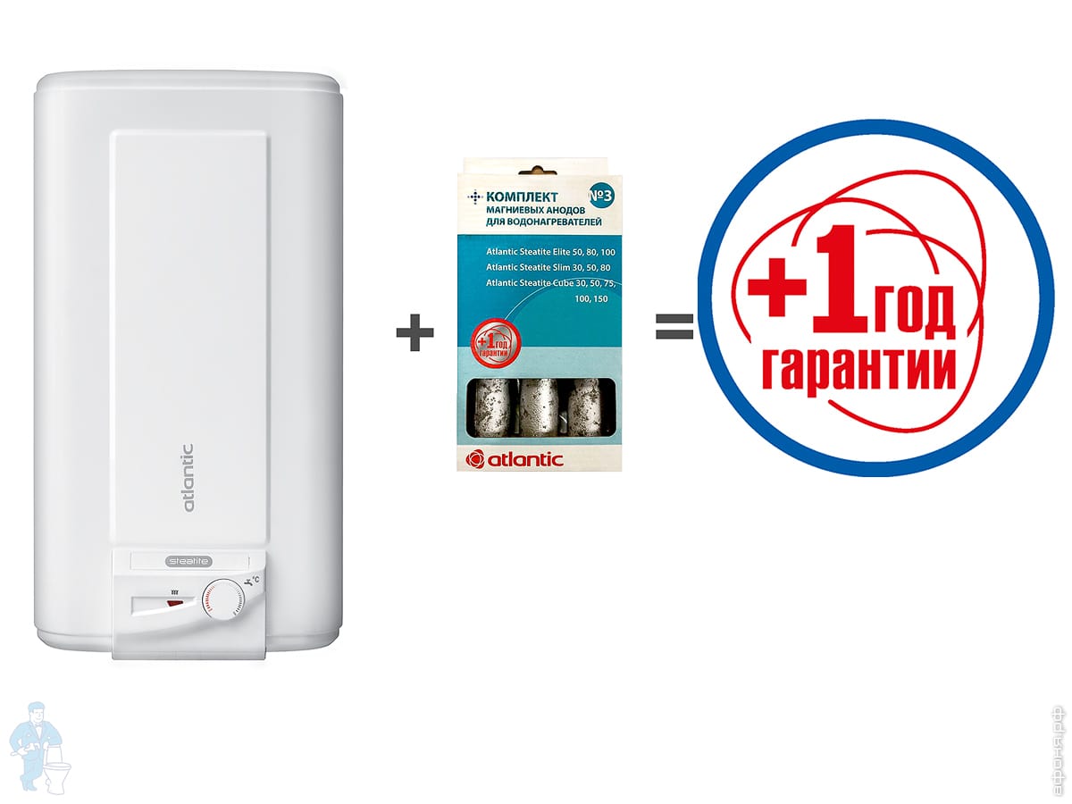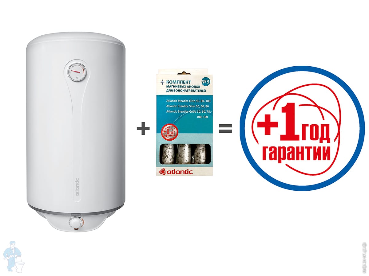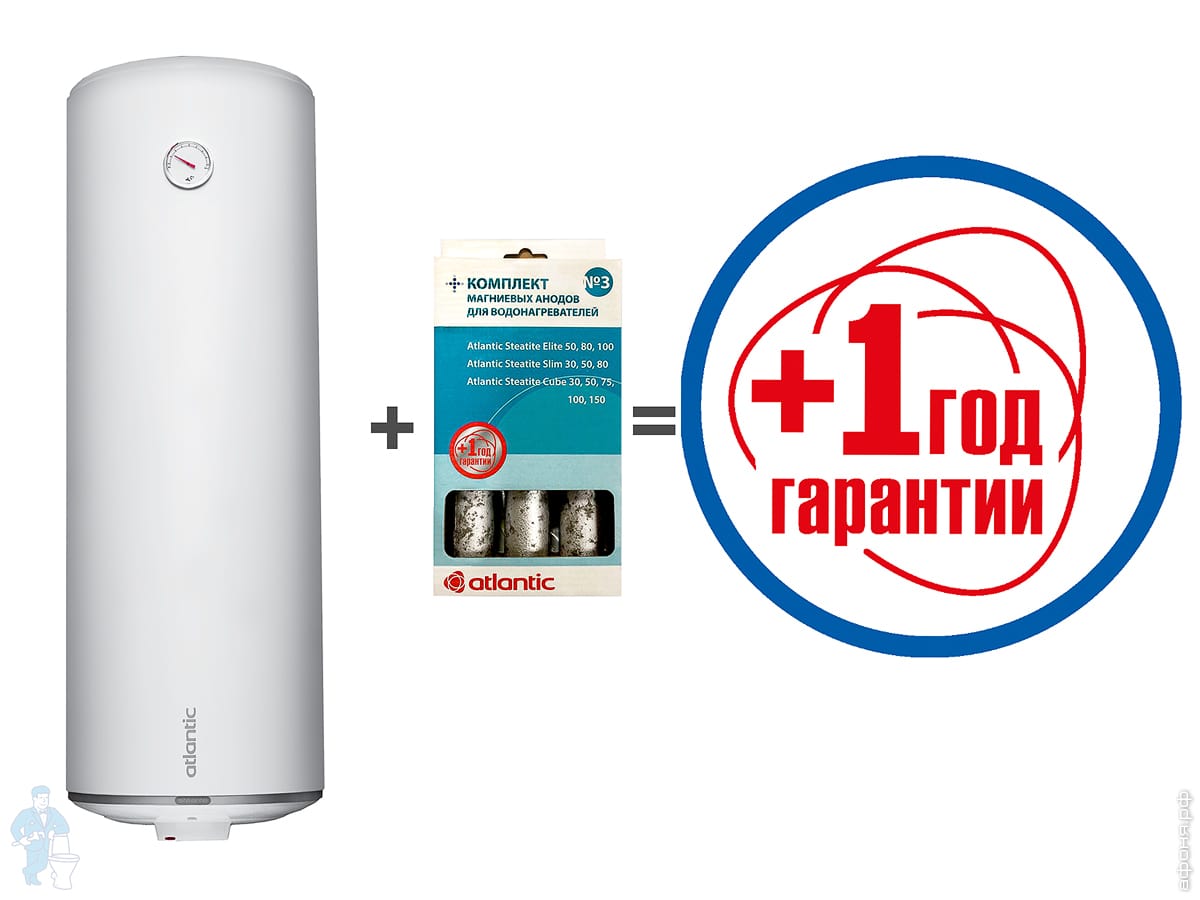 При покупке водонагревателя ATLANTIC с набором анодов, срок гарантии на водогрей увеличивается на 1 год!