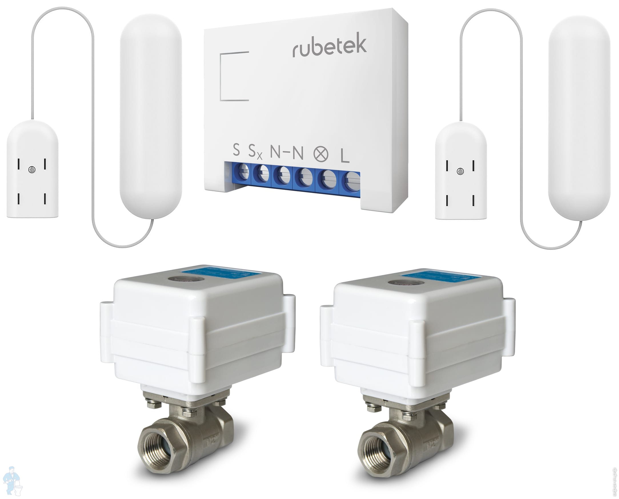 Набор RUBETEK RK-3558 перекрытие воды 1/2", кран шаровый, датчик протечки, Wi-Fi реле