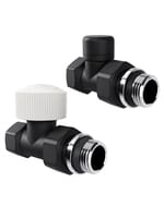 Термостатические наборы серии Design поставляется в комплектации: клапан термостатический для установки на подающий трубопровод, запорный клапан для установки на обратный трубопровод.