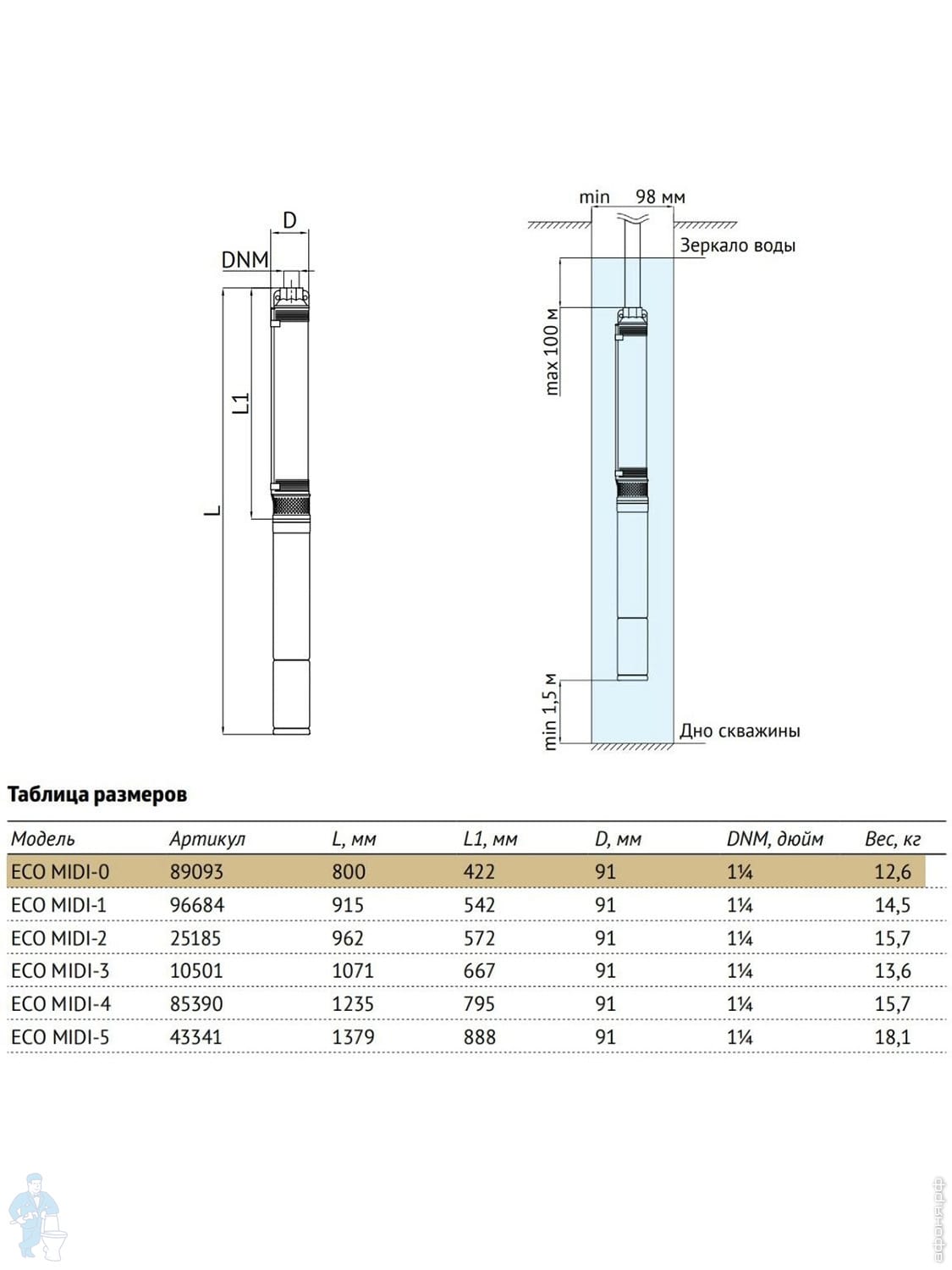 | Диаметр насоса (мм): | 91 | Диаметр скважины от (мм): | 98 |