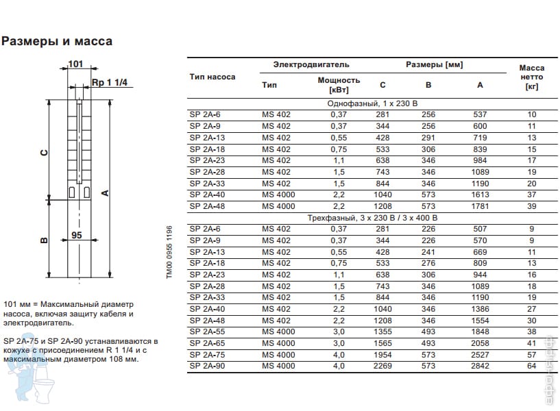 | Макс. глубина погружения насоса (м): | 600 | Вес, кг: | 41 |