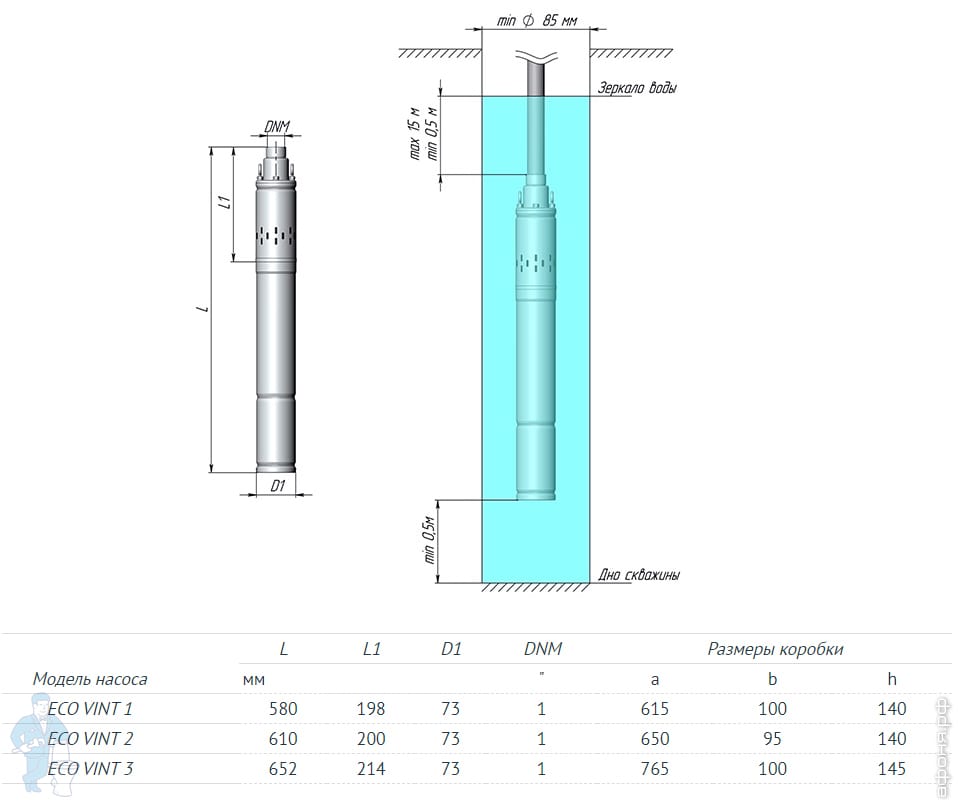 Погружные скважинные насосы UNIPUMP серии ЕСО VINT 0 - предназначены для бытового использования и применяются для подачи чистой пресной воды из колодцев, скважин диаметром не менее 65 мм, и различных резервуаров.
