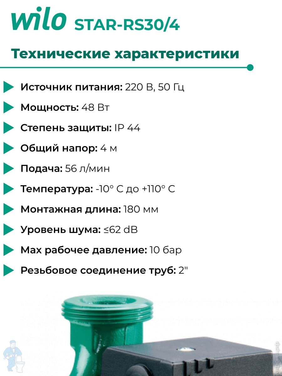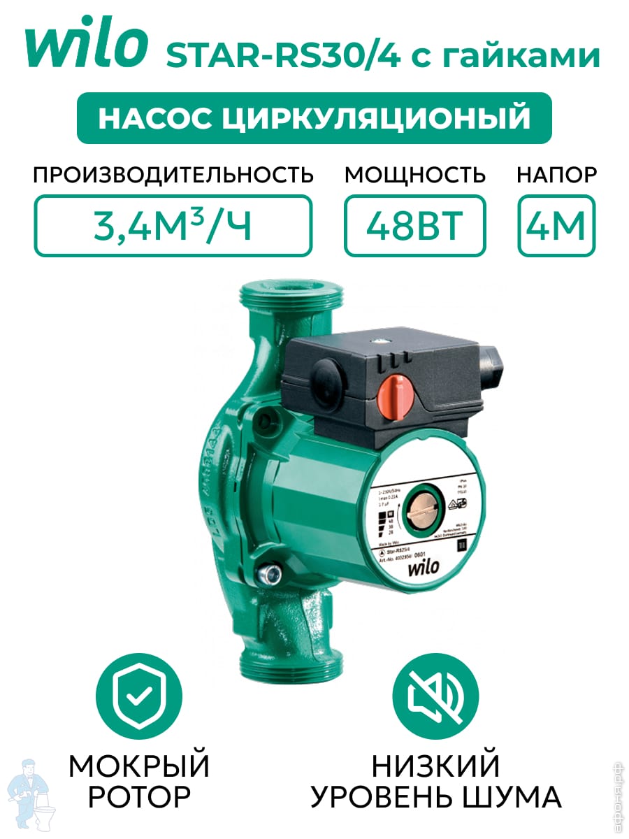 Насос циркуляционный WILO STAR-RS30/4 с гайками