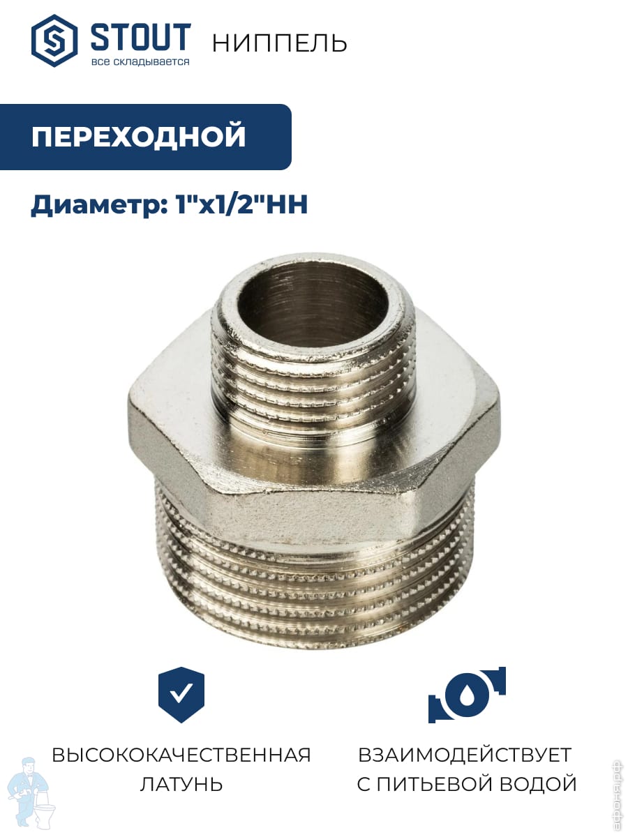 STOUT Ниппель НН переходной никелированный 1"х1/2".