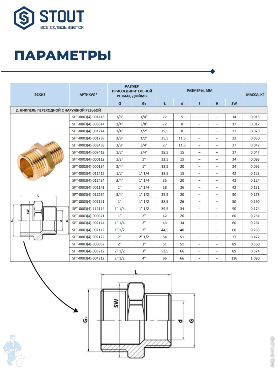 Виды резьбовых фитингов: ниппели переходные