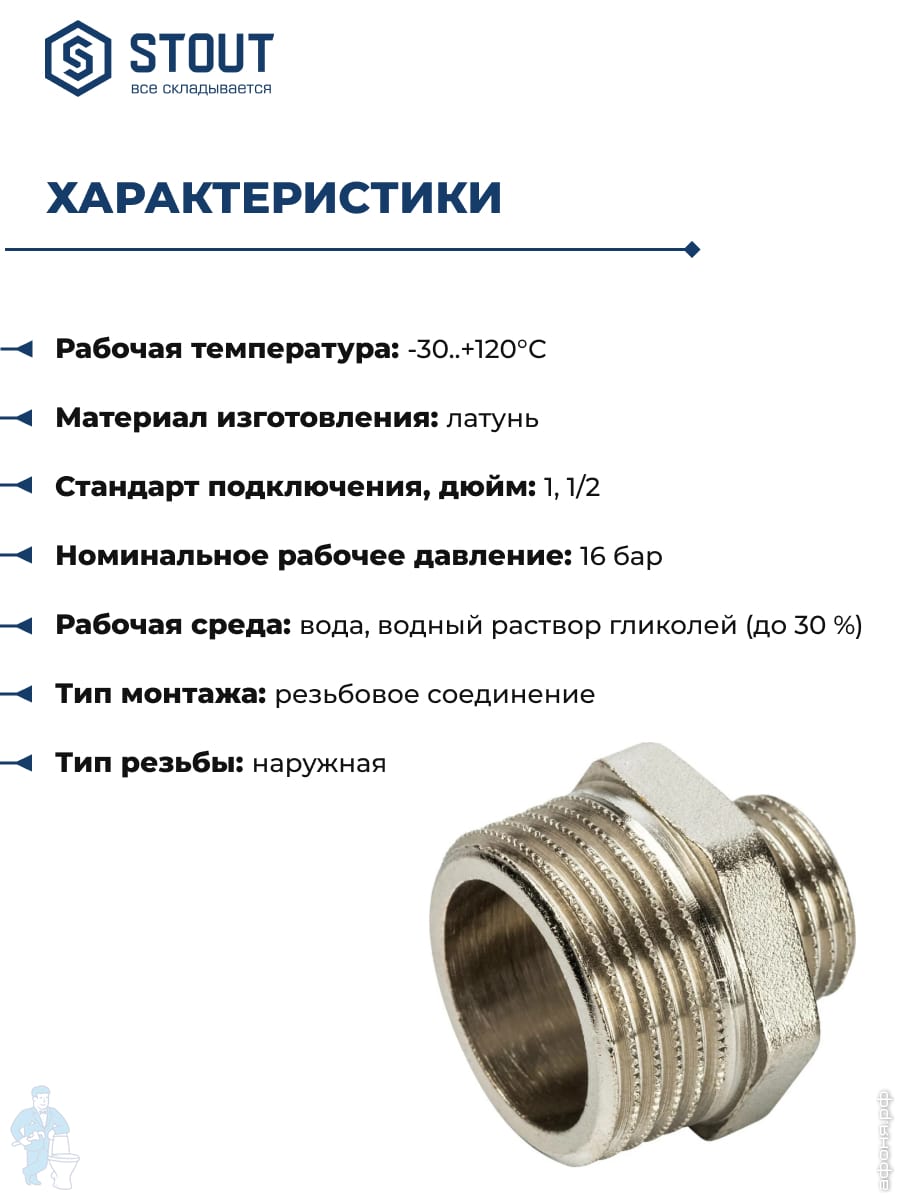Ниппель STOUT 1"х1/2"НН, переходной, никель, SFT-0004-000112