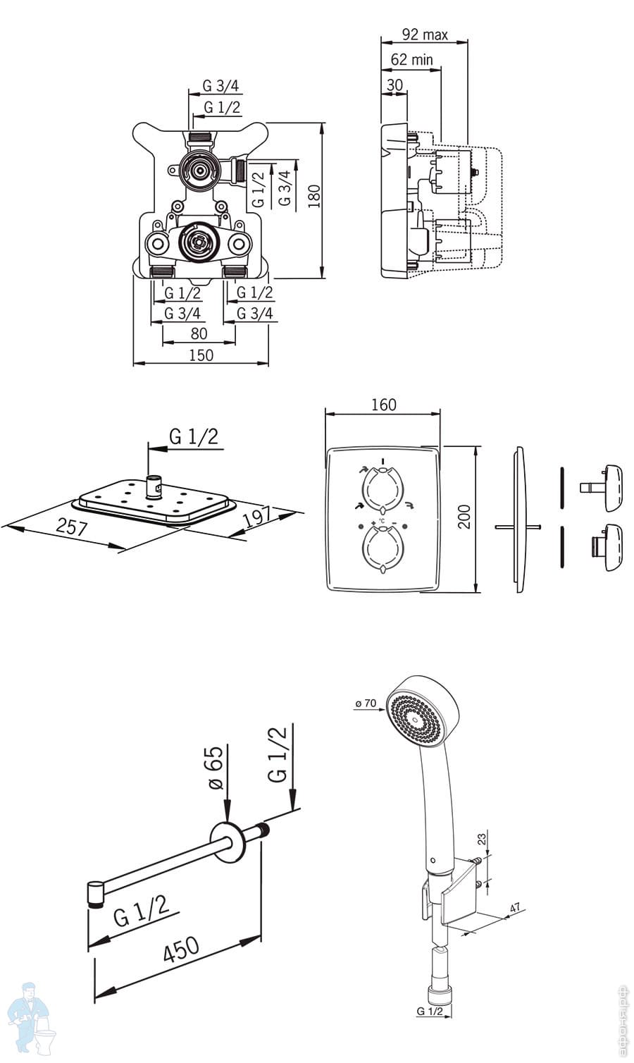 | Тип: | Термостатический | Назначение: | Для душа |