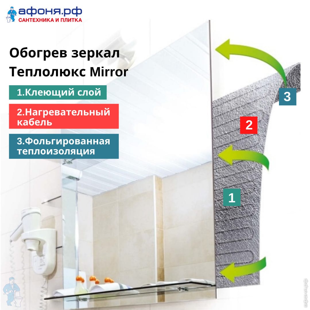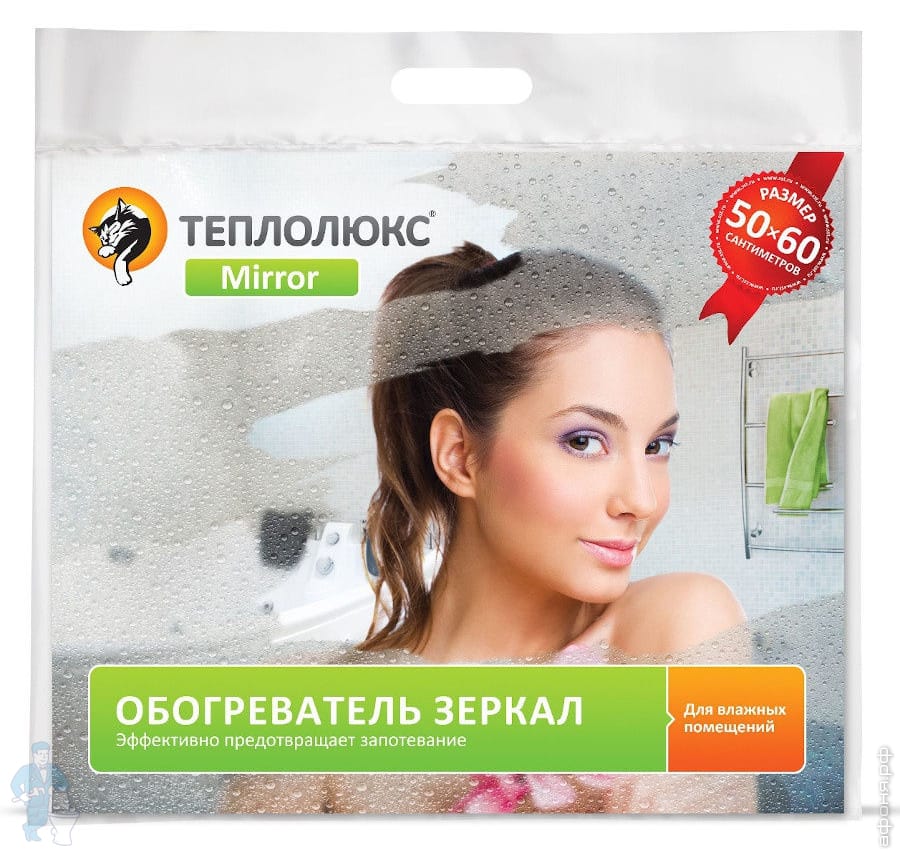 Пленка против запотевания зеркал Теплолюкс Mirror предназначена для предотвращения образования конденсата на зеркалах в ванных комнатах или любых других помещениях с высокой влажностью (сауны, душевые и т. п. ). Просто приклейте пленочный обогреватель к обратной стороне зеркала и подключите в электрическую сеть - и Ваше зеркало всегда сухое и чистое!