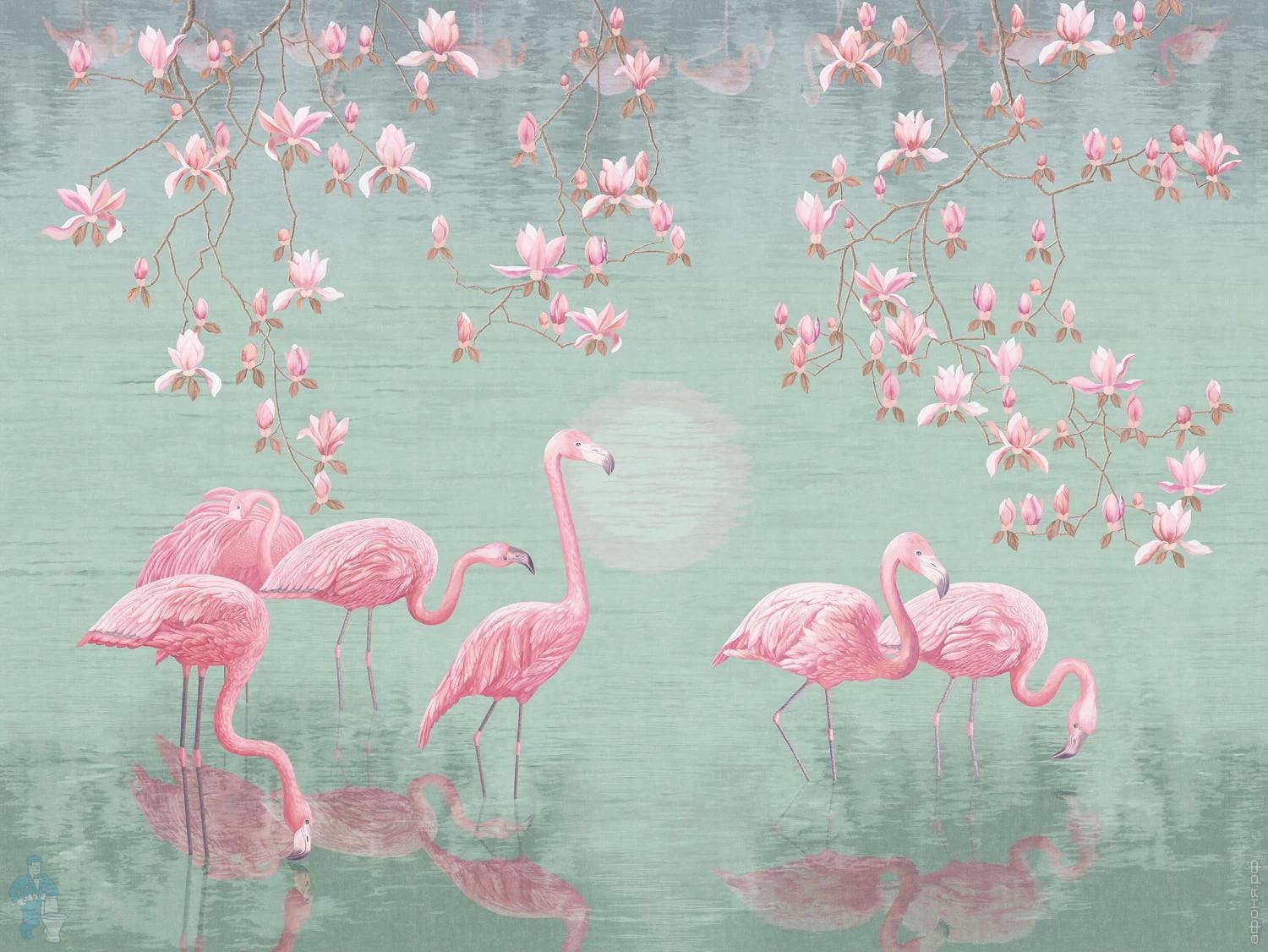 Обои Affresco Wallpaper part 1 (1х3) светло-зеленые , фламинго AB134-COL4 (кв.м.)