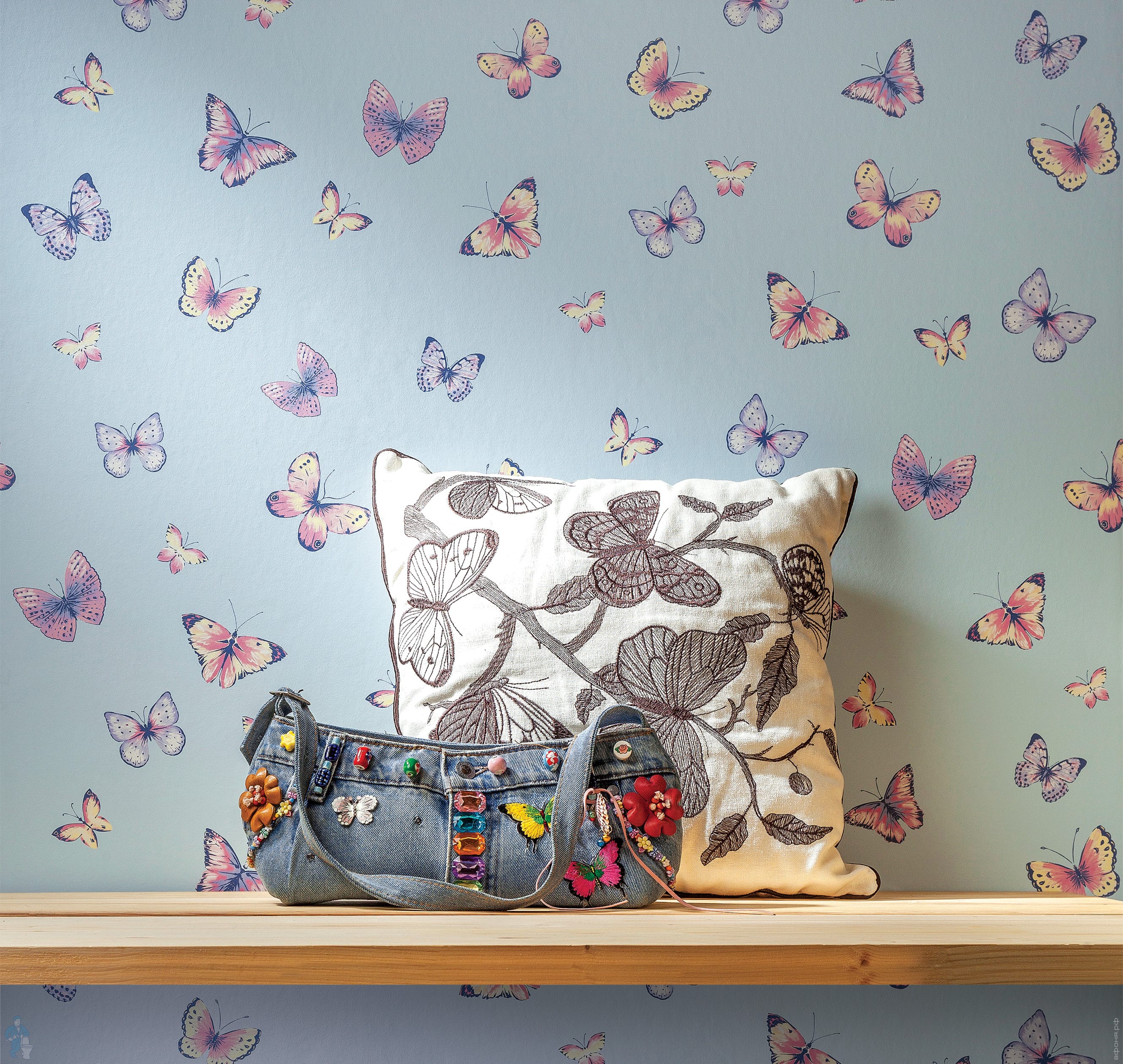 Обои флизелиновые Milassa Twins 4, 006 (1х10,05) бабочки, голубые (рул.)