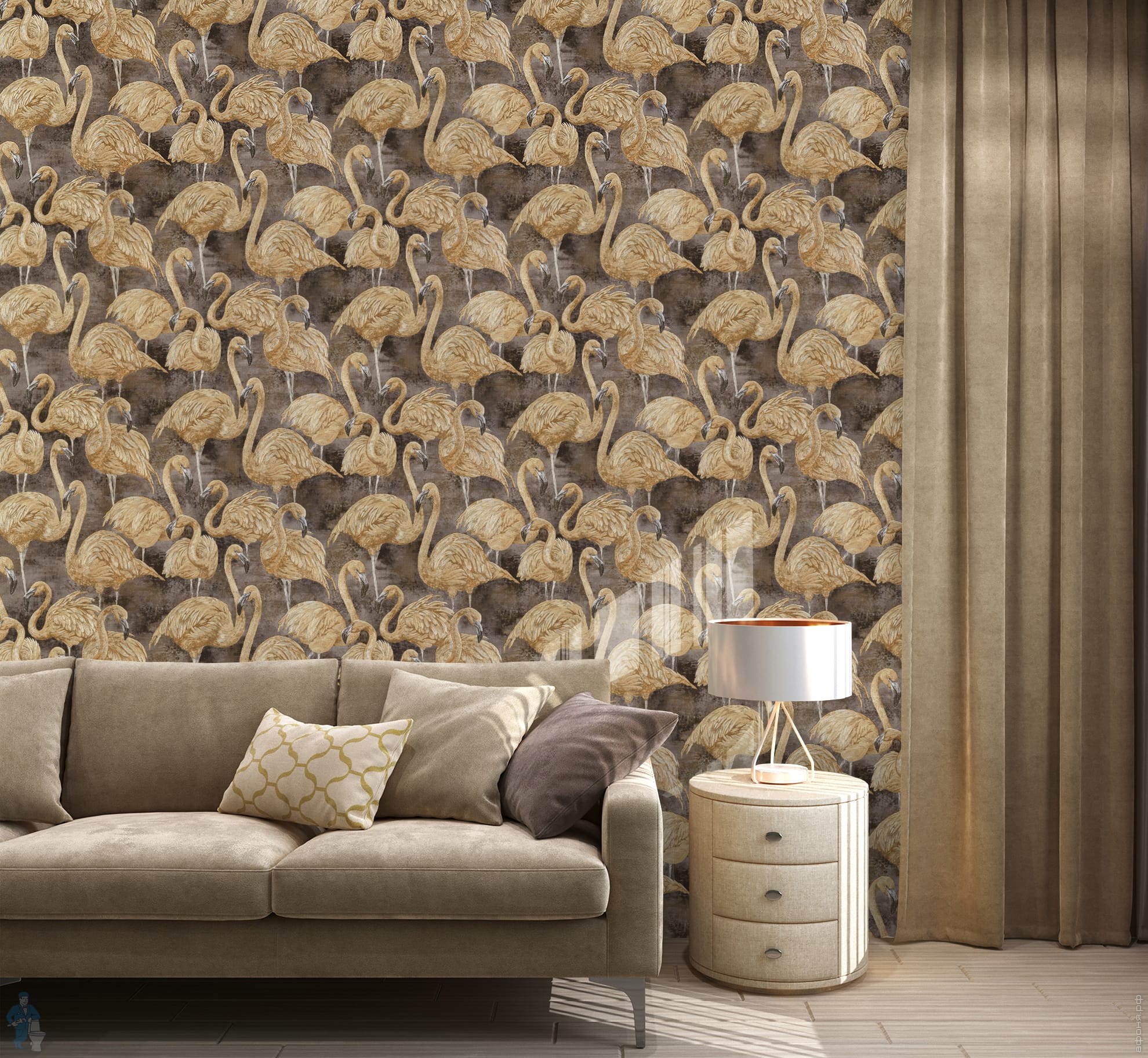 Обои OVK Design Sirpi Nature Фламинго (1,06х10) коричневые, 10364-06 (рулон)