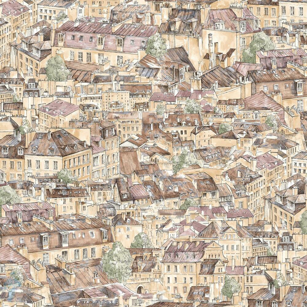 Обои виниловые на флизелине Grandeco Grange R102122 (1,06х10,05) город, коричневые (рул.)