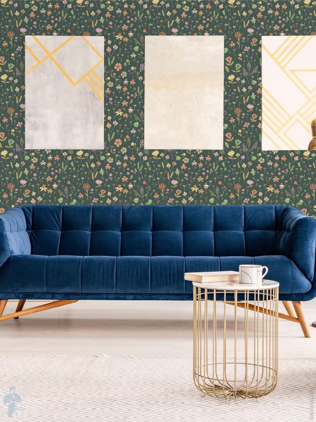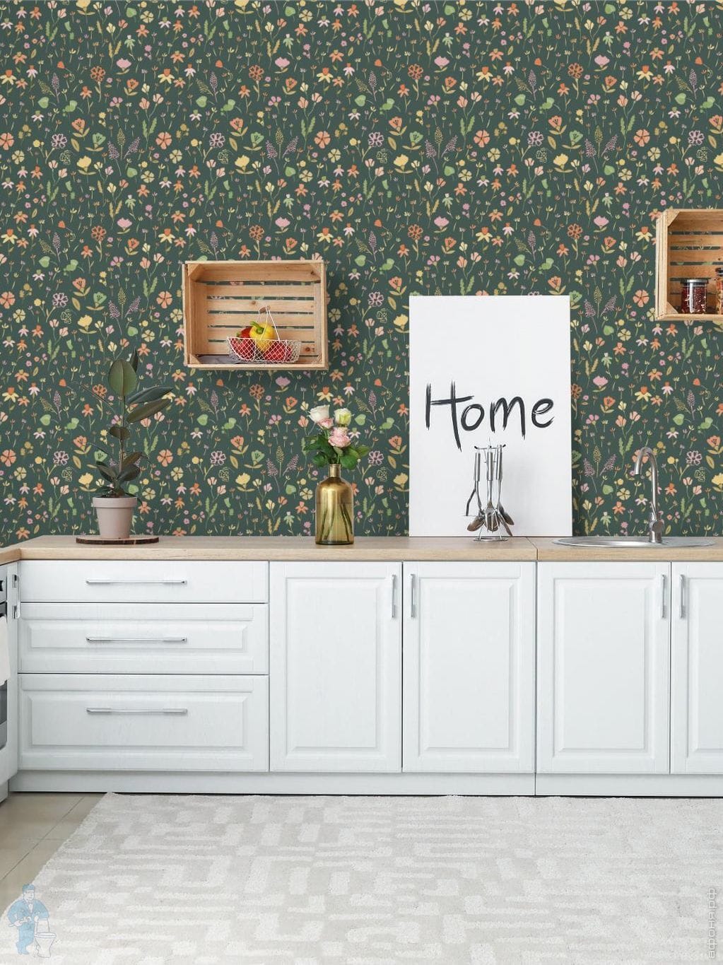 Обои виниловые на флизелине Grandeco Maison MN 3513 (0,53х10,05) цветы, зеленые (рул.)