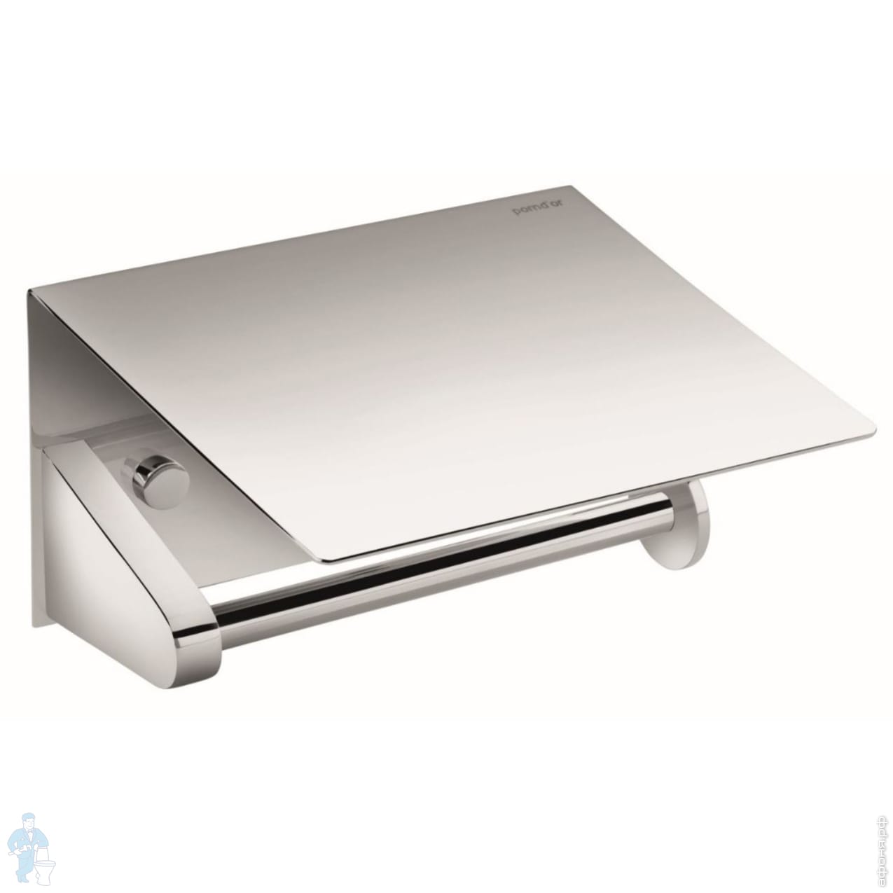 Бумагодержатель с крышкой выполнен в современном дизайне. Основной цвет - хром.