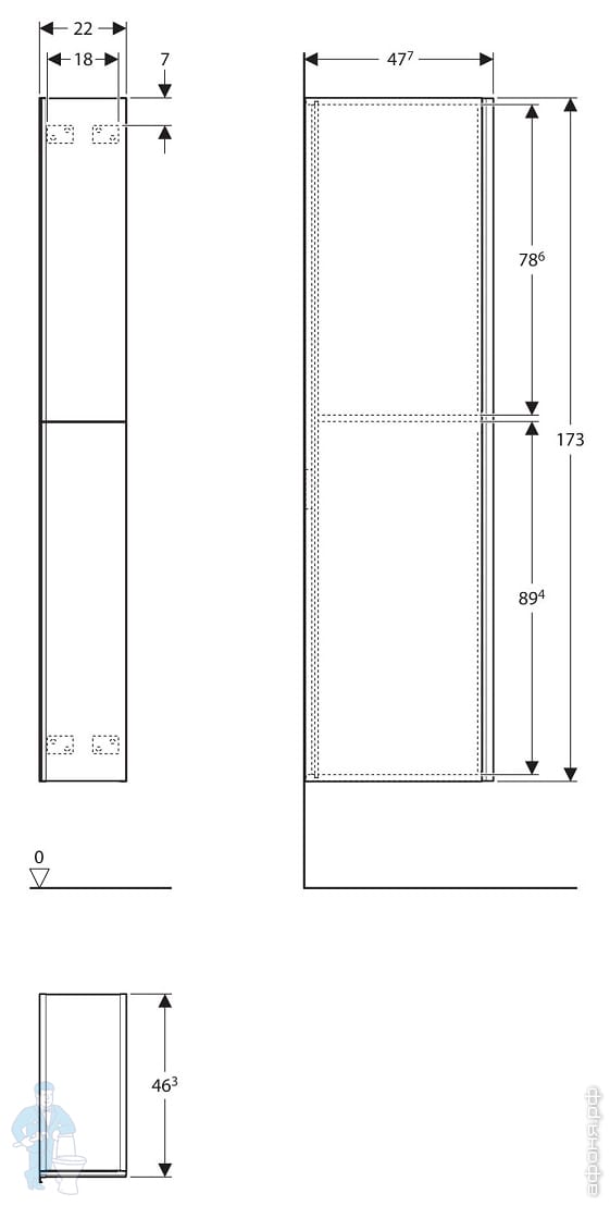 Пенал Geberit Acanto (220x1730x476) подвесной узкий, цвет лавовый, ящик для лекарств 500.638.JK.2