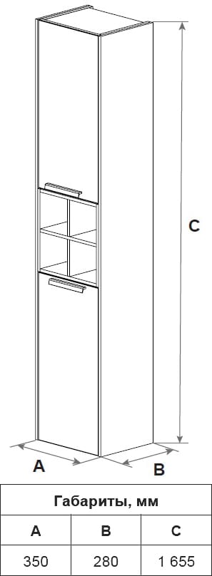 | Ширина, мм: | 350 | Высота, мм: | 1655 |