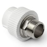 Полипропиленовая комбинированная муфта с наружной резьбой под ключ предназначена для монтажа труб из разного материала: полимерных и металлических. На внешней поверхности у муфты находятся выступы, с помощью которых ее легко можно закрутить гаечным ключом.