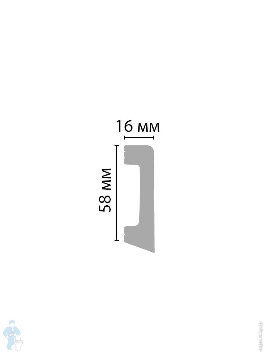 Размеры (мм) ВхШхД - 16х58х2400Плинтус или молдинг из дюрополимера скрывает неровности, а также выполняет декоративные задачи: с его помощью можно визуально объединить или четко разъединить плоскости потолка и стен. DECOMASTER производит и предлагает партнерам высококачественные потолочные плинтусы из дюрополимера, способные стать изысканным штрихом в интерьере. Оформляя помещение в классическом стиле, без декоративных потолочных плинтусов не обойтись. Изделия со сложным и искусно проработанным рисунком – настоящая находка для любителей эклектики и ар-деко.