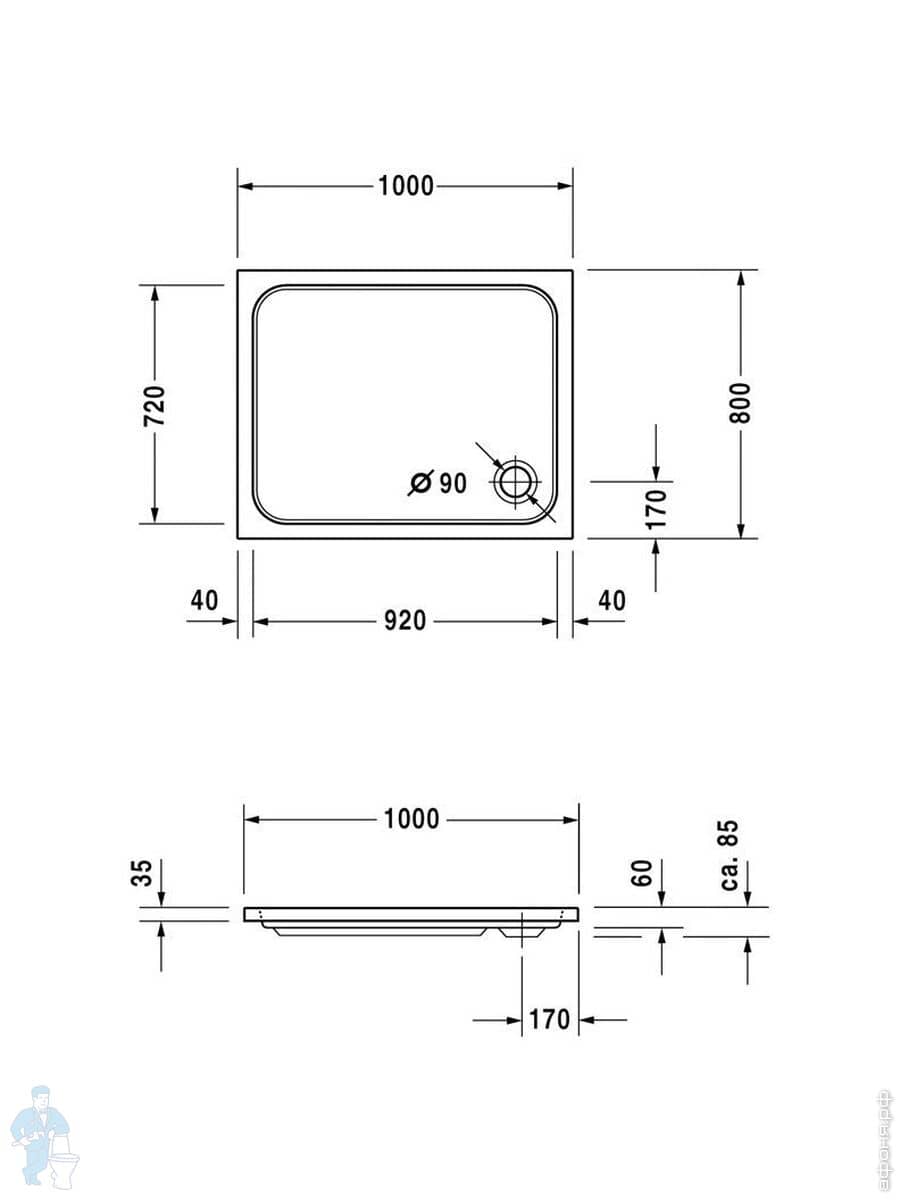Поддон акриловый Duravit D-Code 1000х800 с антискользящим покрытием 720106000000001