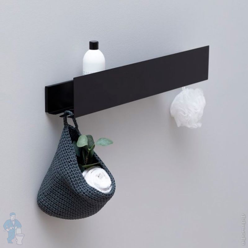 Полка Акванет Магнум (500х120х108) с крючками, цвет: черный матовый 274189