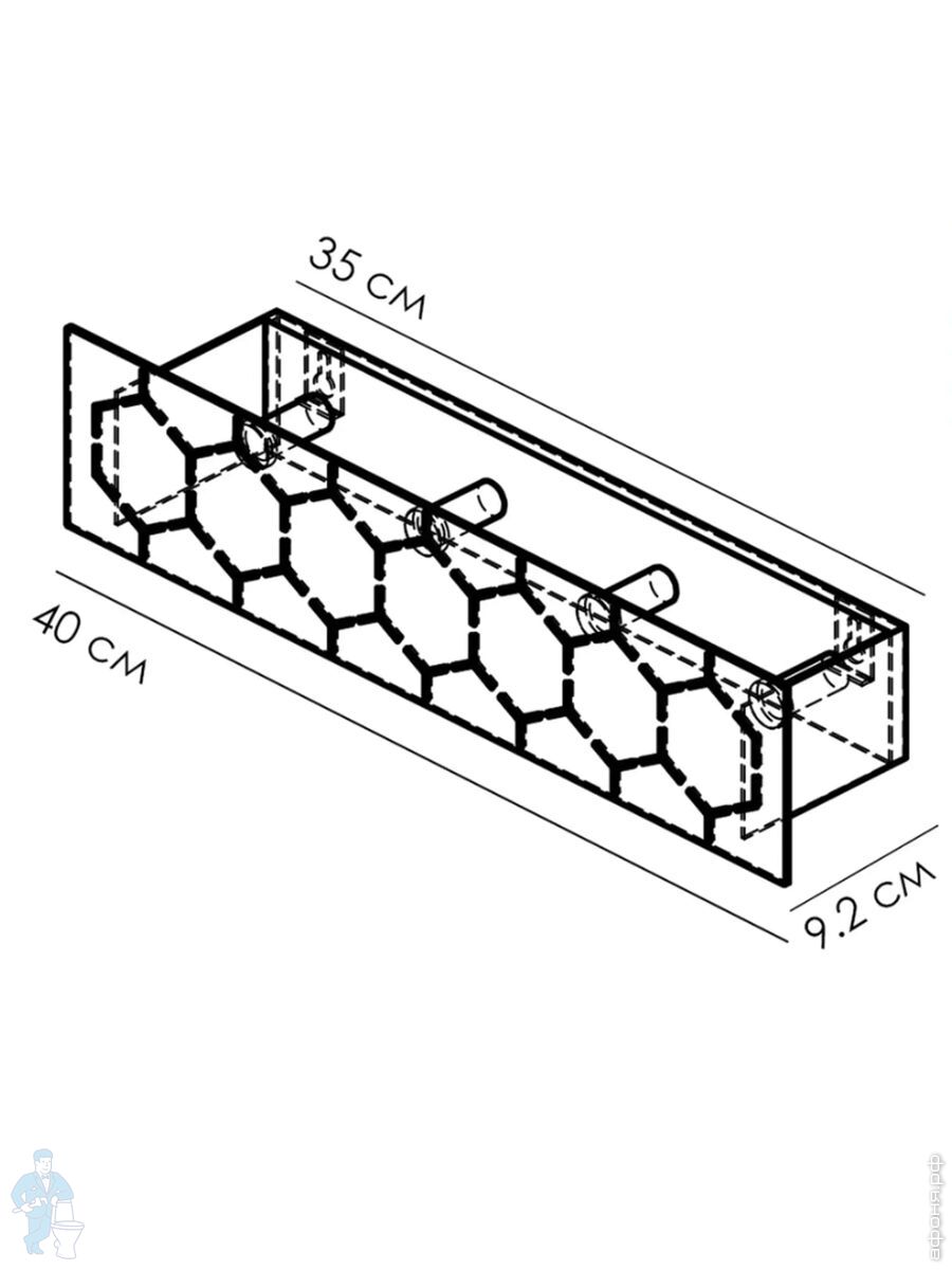 Полка FLOW Bee Hook 400х92х90 настенная, с крючками, черный Fl-bee-hook40-ч
