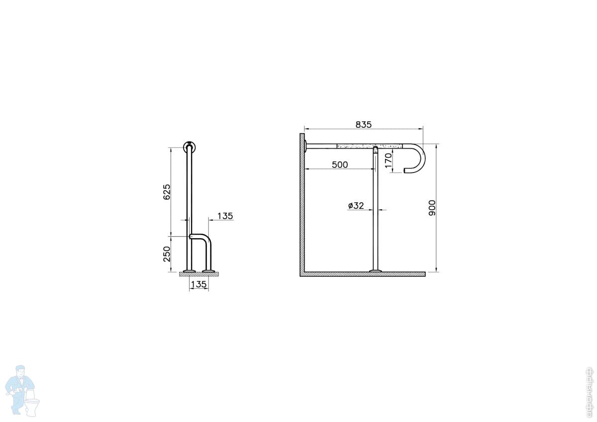 Поручень Vitra Arkitekta A44469 опорный, напольный, нержавеющая сталь, цвет: хром