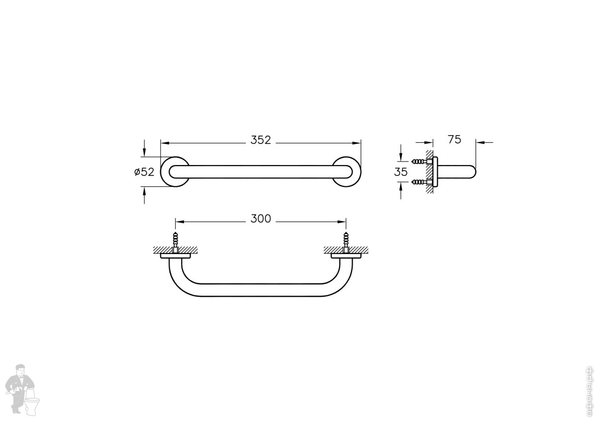 Поручень для ванны Vitra Arkitekta A44375 350мм, настенный, нержавеющая сталь, цвет: хром