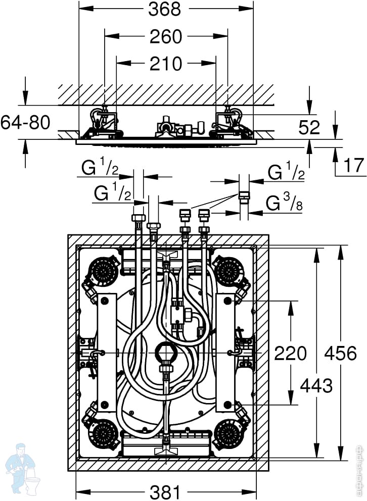 Рекомендуем приобретать в комплекте с: Grohtherm F комплект монтажной части для встроенного термостата с переключателем на 2 положения 27 618 000, 35 500 000 и комплект верхней монтажной части для вентиля на 3 выхода 27 625 000, 35 031 000