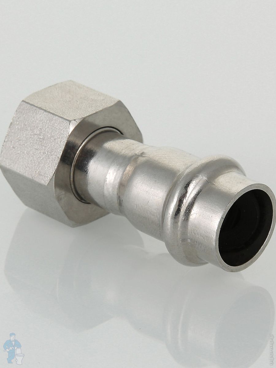 Пресс соединитель VALTEC 18х1/2"В, с накидной гайкой, нерж. сталь, VTi.908.I.001804