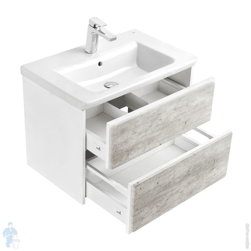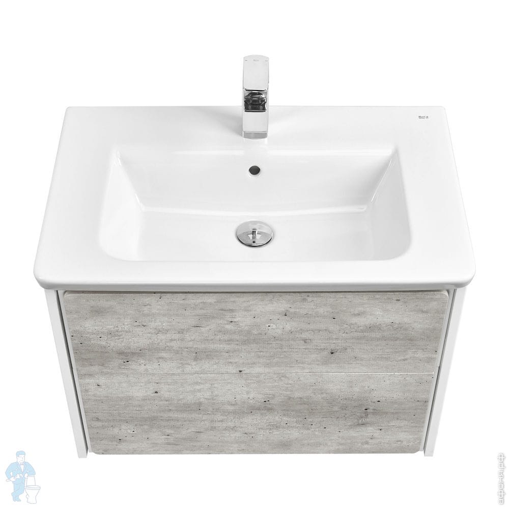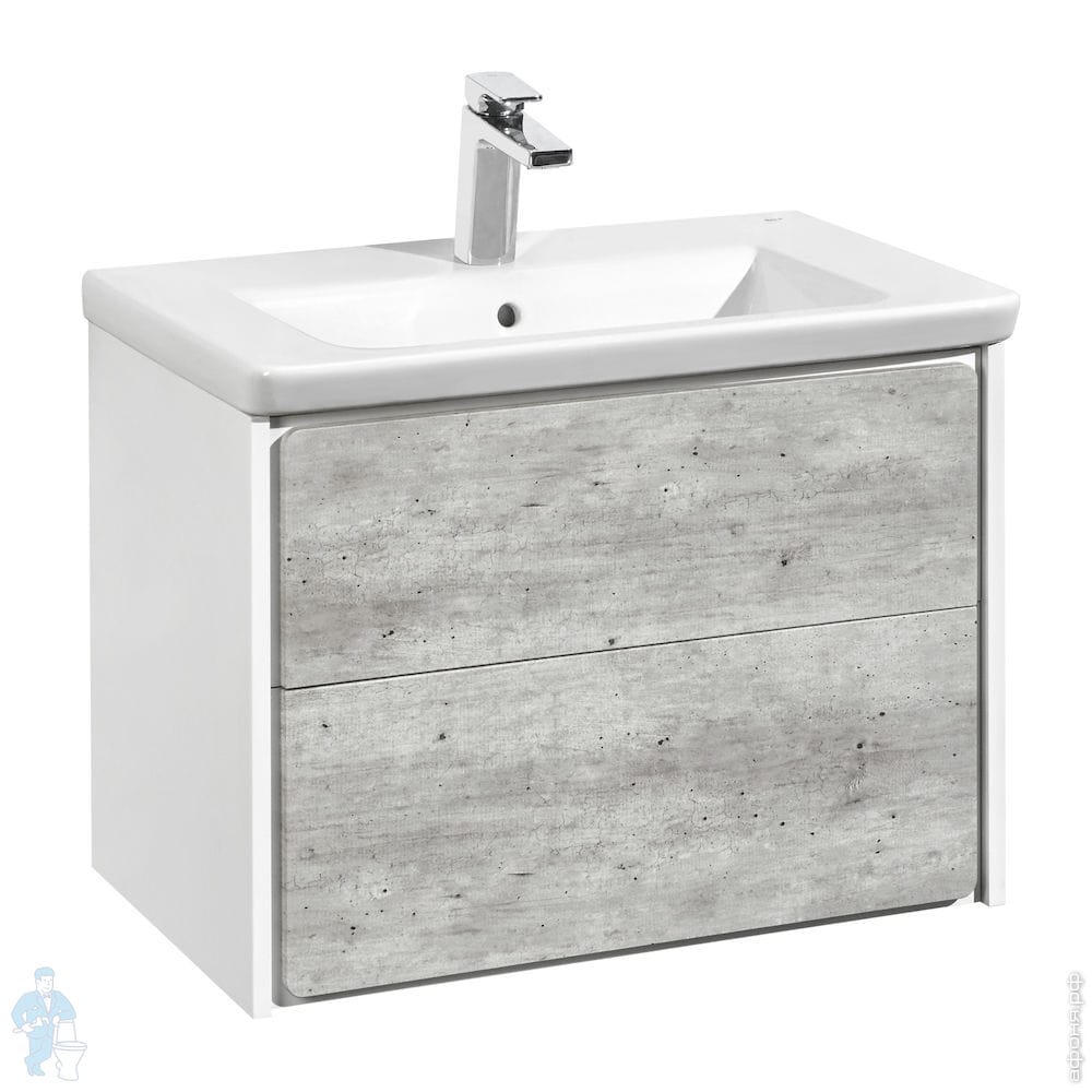 Tумба под раковину Roca Ronda (677х480x412) 2 ящика, сифон, бетон/белый матовый ZRU9303003
