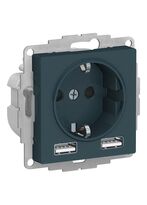 - Розетка силовая Systeme Electric (ранее Schneider Electric) серии AtlasDesign 16А (цвет изумруд) с заземлением и шторками с розеткой USB, с друмя разъемами типа А.