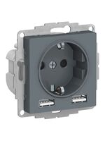 Розетка Systeme Electric ATLASDESIGN 16А c 2USB A+A, 5В/2,4А, 2х5В/1,2А, механизм, ГРИФЕЛЬ ATN000730